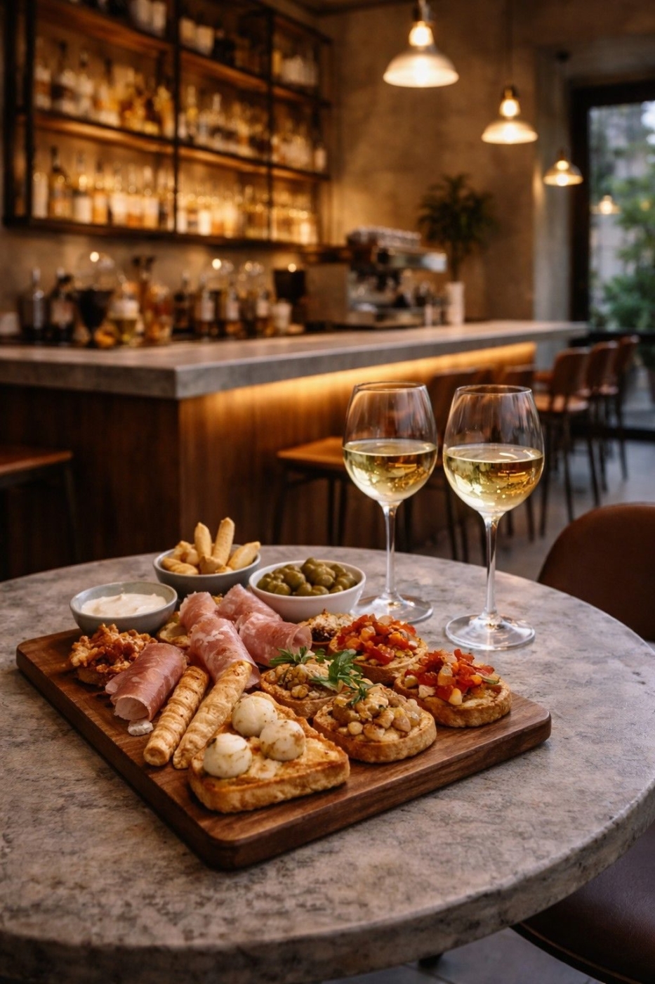 Дизайн интерьера выполнен в атмосфере уютных парижских баров, создавая тёплую и привлекательную обстановку. Зал рассчитан на 20 посадочных мест. Ключевая фишка — полностью оборудованная и профессиональная кухня с эксклюзивной техникой, включая Пако Джет (первого поколения). В центре зала расположен витринный холодильник-винный шкаф, который привлекает внимание гостей и подчёркнуто выделяет ассортимент.