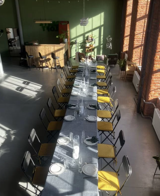 Просторное помещение площадью 132 квадратных метров и высотой потолков идеально подходит для проведения любых мероприятий.