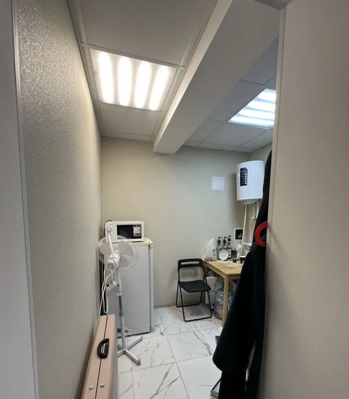 Готовы к работе три рабочих кабинета (в двух есть мокрая точка), большой холл с двумя рабочими столами и зона ожидания. При необходимости можно оборудовать в кабинет еще одно помещение, которое используется для хранения материалов.